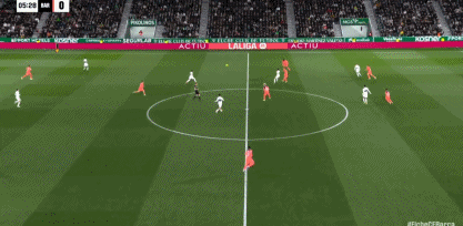 第29分钟,阿尔瓦罗-罗德里格斯反越位单刀低射破门,埃尔切1-1!