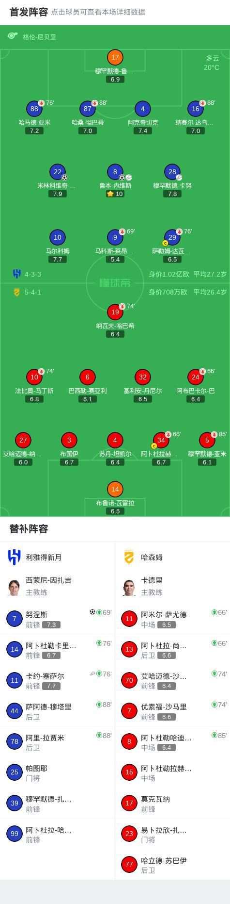 第29分钟,利雅得新月球员鲁本-内维斯助攻米林科维奇-萨维奇打入一球。