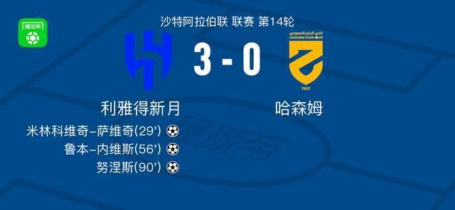北京时间1月8日沙特阿拉伯联 联赛 第14轮,利雅得新月主场对阵哈森姆。利雅得新月米林科维奇-萨维奇破门,鲁本-内维斯破门,努涅斯破门。最终比分利雅得新月 3-0 哈森姆。