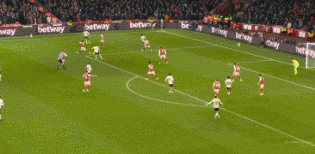 第27分钟,布拉德利中场得球快速推进,随后送出直塞,这球力量有点小被断,拉亚出击将加布里埃尔的回传球解围,但没有踢远,布拉德利得球直接吊门,这球击中横梁弹出