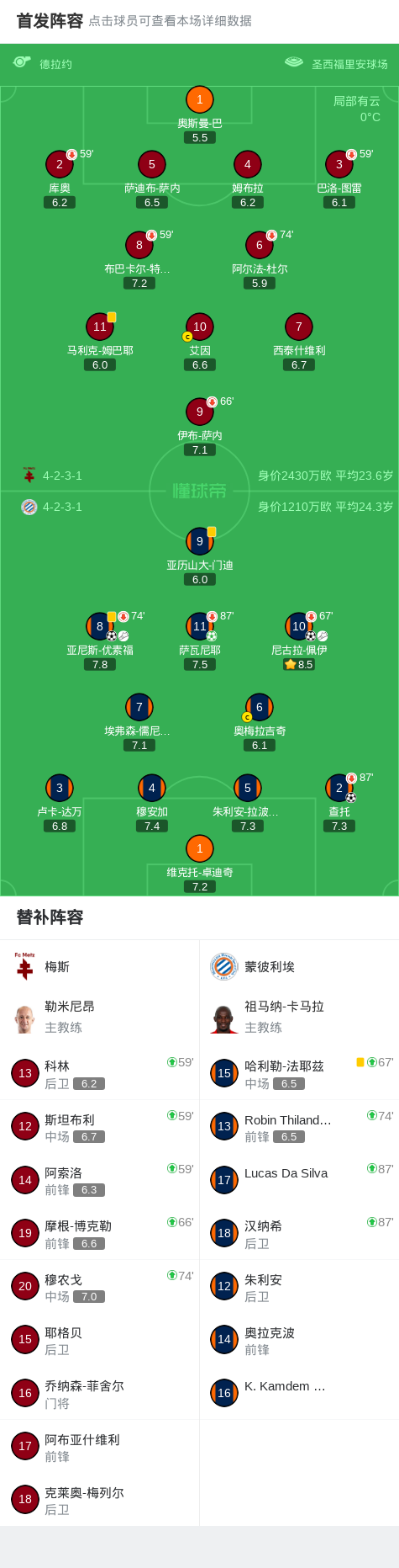 第64分钟,蒙彼利埃球员亚尼斯-优素福助攻尼古拉-佩伊打入一球。