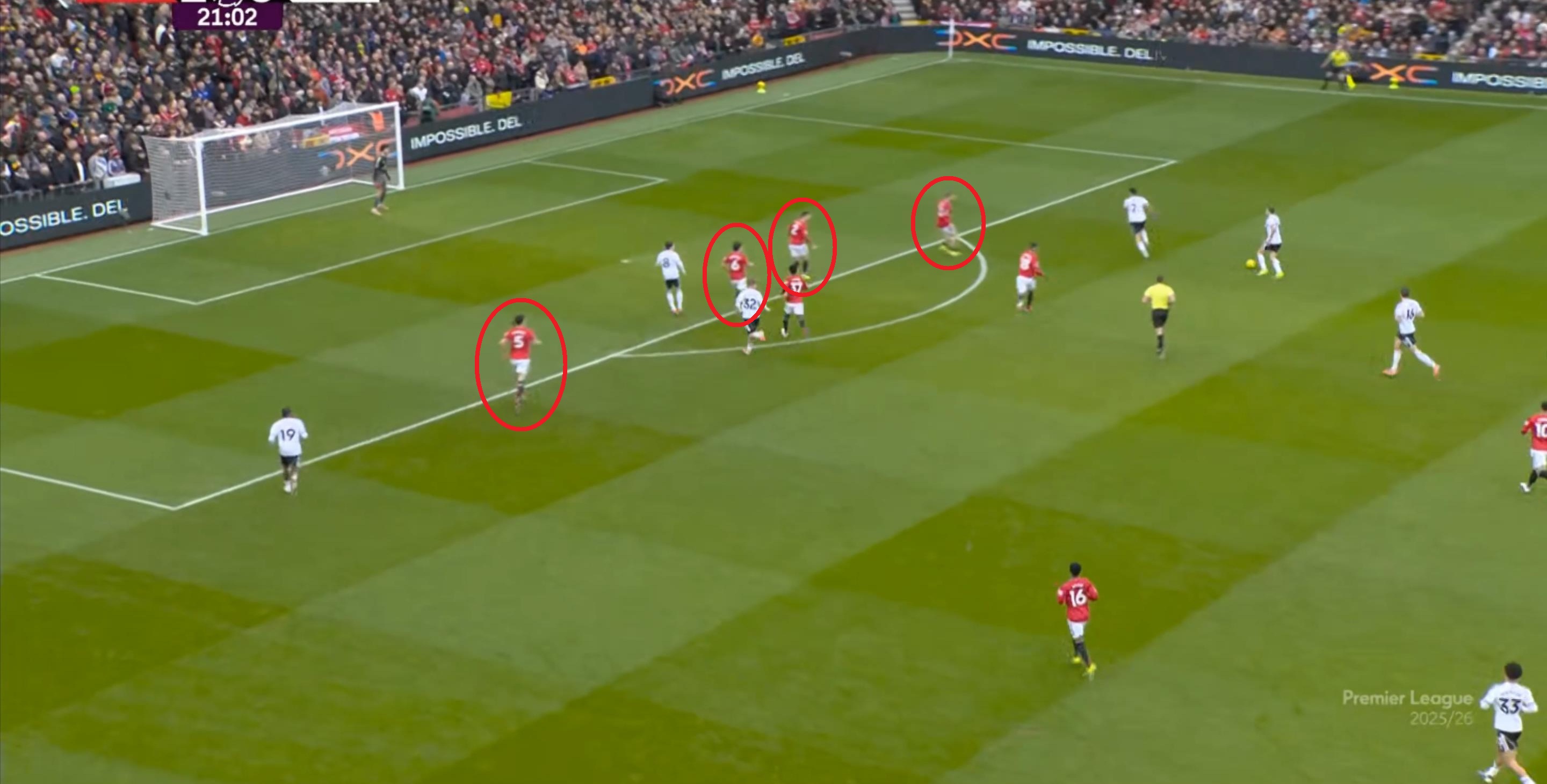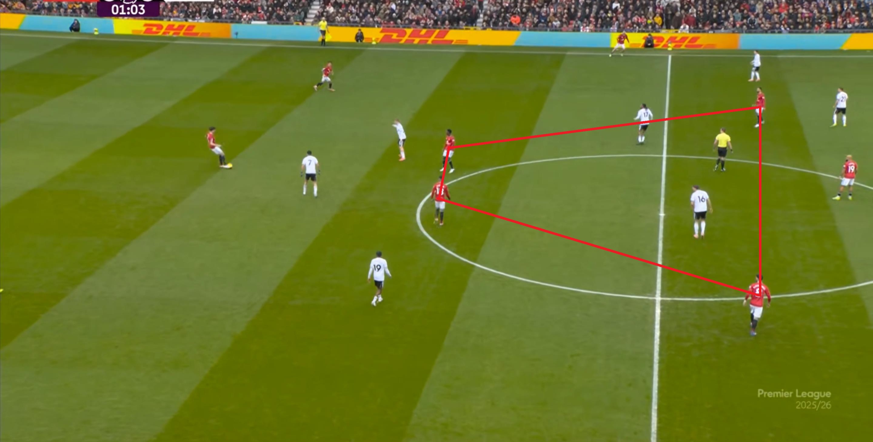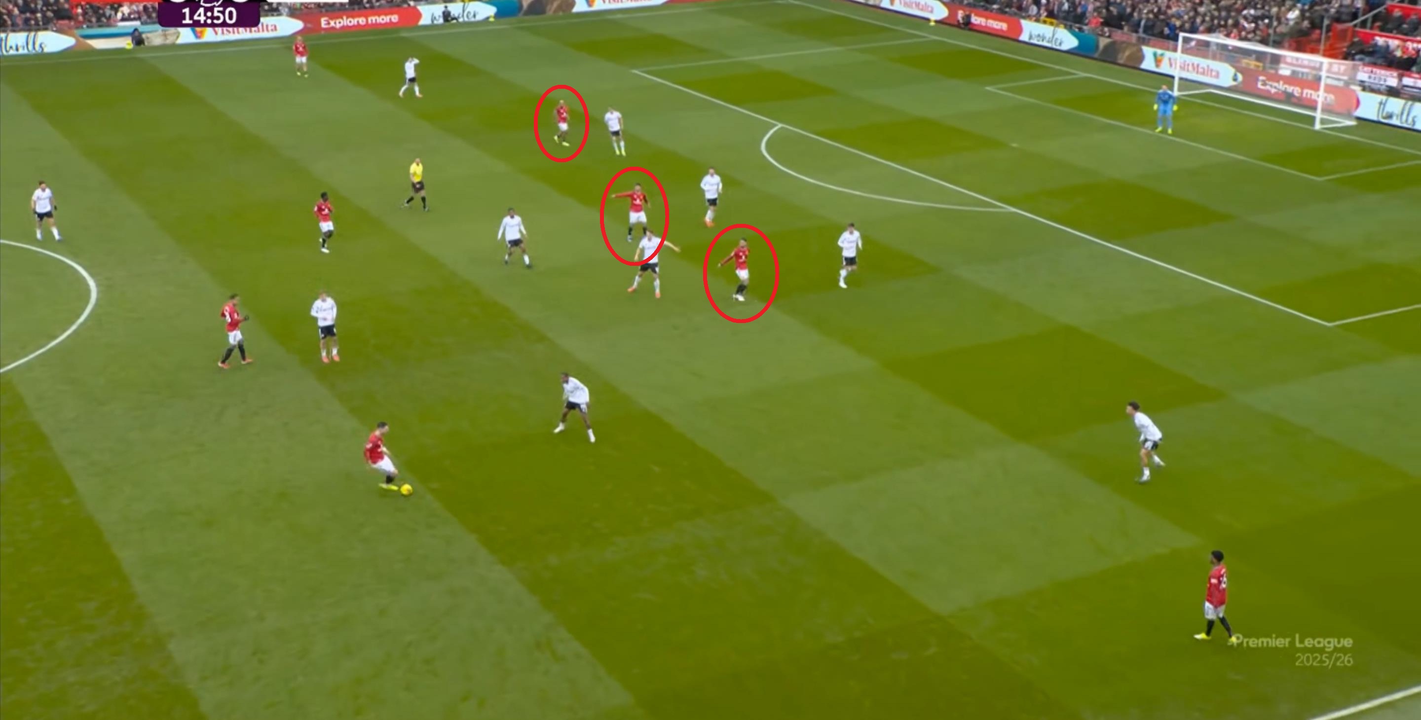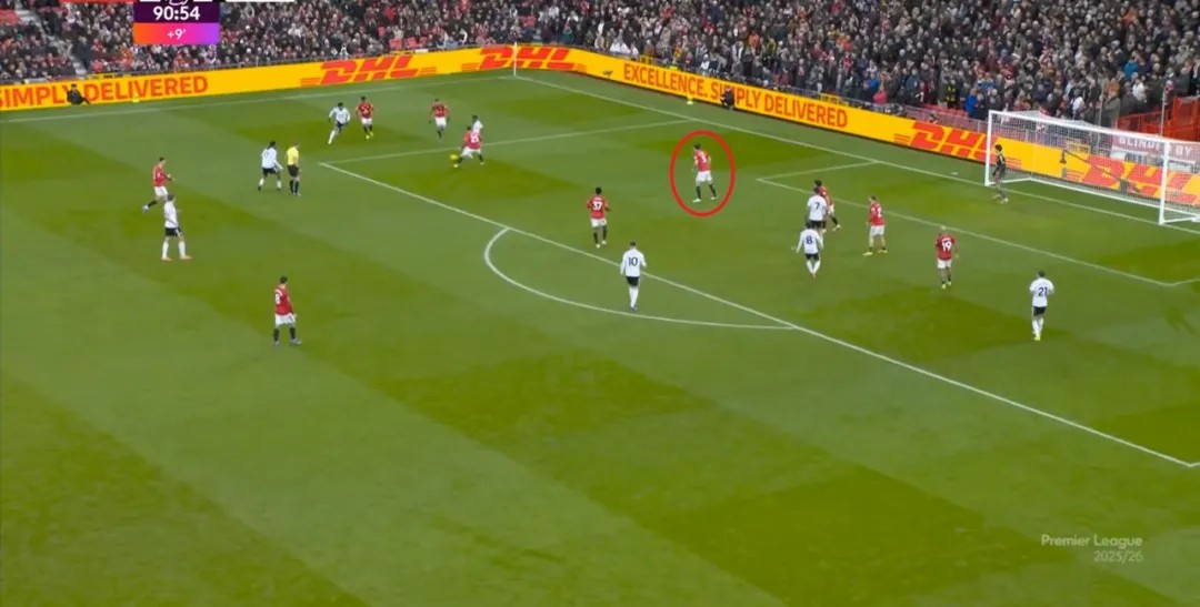 于是,因为右侧确实防不住富勒姆的推进,加上部位点位跟不上,曼联在进球之后,反而逐渐落入下风,被富勒姆掌控住了上半场的后半段局面。