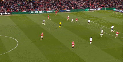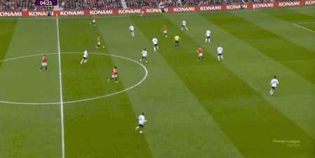 所以在守转攻当中,富勒姆在开场还曾抓住曼联无法及时转换的防守体系漏洞,富勒姆起球打身后的时候,曼联只有三个后卫镇守最后一线: