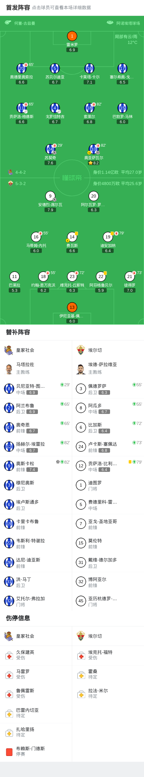 北京时间2月8日西班牙足球甲级联赛 联赛 第23轮,皇家社会主场对阵埃尔切。皇家社会苏契奇破门,奥亚萨瓦尔破门,奥斯卡松破门。埃尔切安德烈-席尔瓦破门。最终比分皇家社会 3-1 埃尔切。