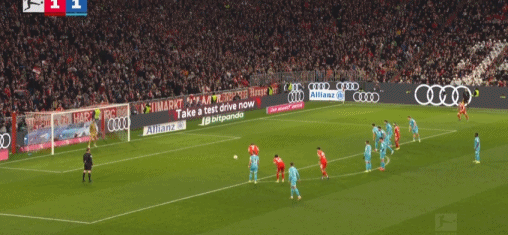 第45分钟,迪亚斯再造点,凯恩点射双响,拜仁2-1霍芬海姆
