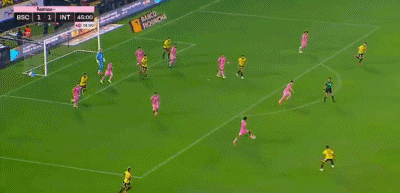第45+3分钟,梅西送助攻,新援贝尔泰拉梅低射得分,迈阿密国际2-1