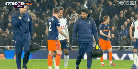 热刺对阵纽卡的比赛中,前锋奥多贝尔在上半场和纽卡前锋哈维-巴恩斯身体碰撞受伤离场。
