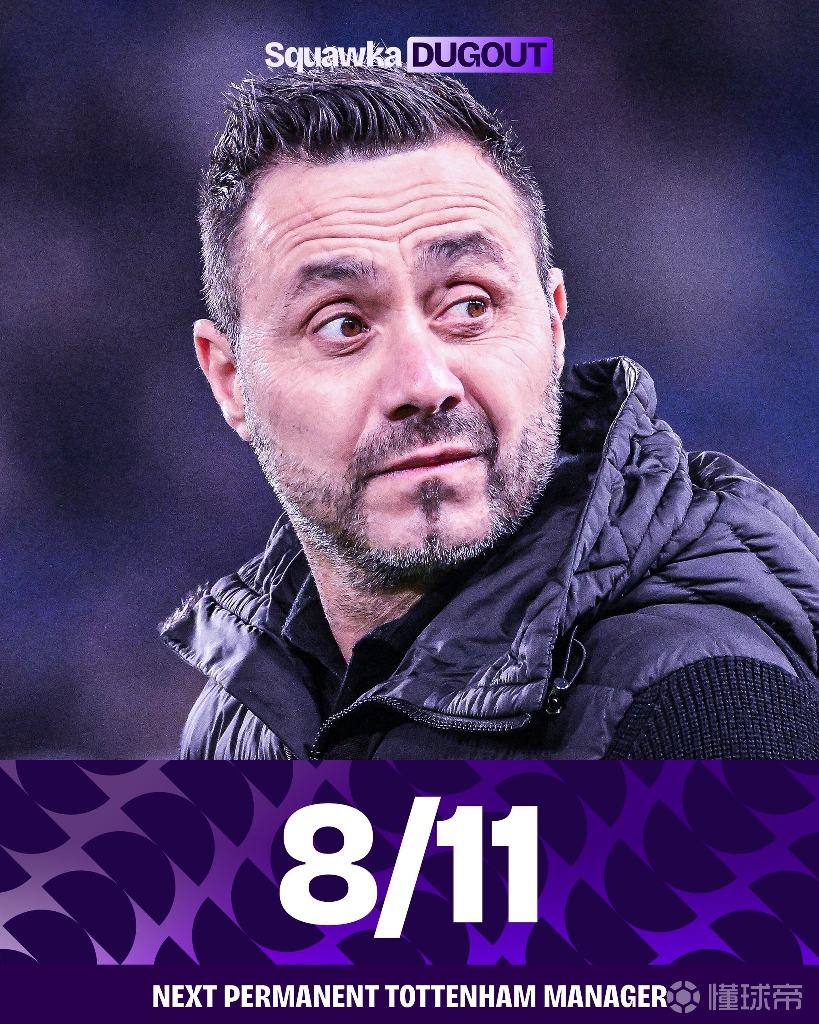 北京时间2月11日,在托特纳姆热刺解雇原主帅托马斯-弗兰克之后,Squawka的统计指出,前马赛主帅德泽尔比是目前赔率最低的接替者。