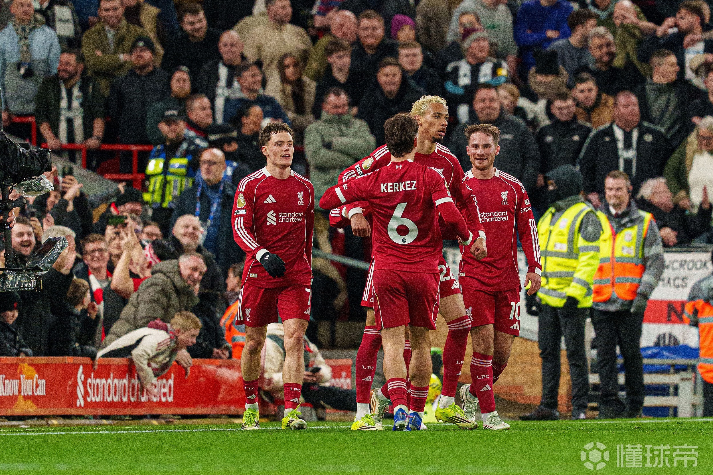 利物浦在主场对阵纽卡斯尔联,上半场纽卡前锋戈登率先完成破门,随后埃基蒂克三分钟两球将比分反超,下半场萨拉赫助攻维尔茨低射建功,科纳特终场前补射锁定胜局。最终利物浦4-1逆转纽卡斯尔联,终结联赛5轮不胜。