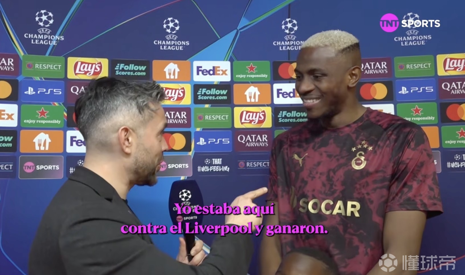 欧冠淘汰赛附加赛首回合,加拉塔萨雷主场5-2战胜尤文图斯,加拉塔萨雷前锋奥斯梅恩赛后接受了TNT体育墨西哥频道的采访。