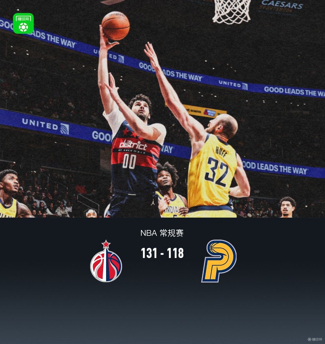 奇才八人得分上双131-118轻取步行者,威廉姆斯25+10
