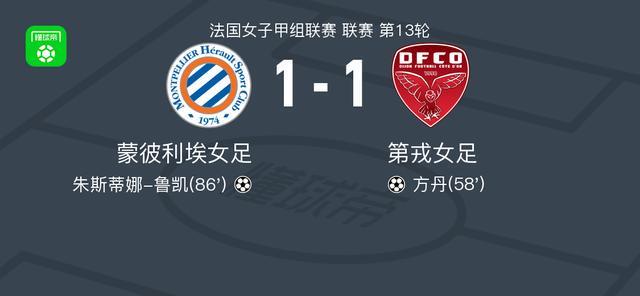 蒙彼利埃女足1-1第戎女足,方丹先拔头筹,朱斯蒂娜-鲁凯救主