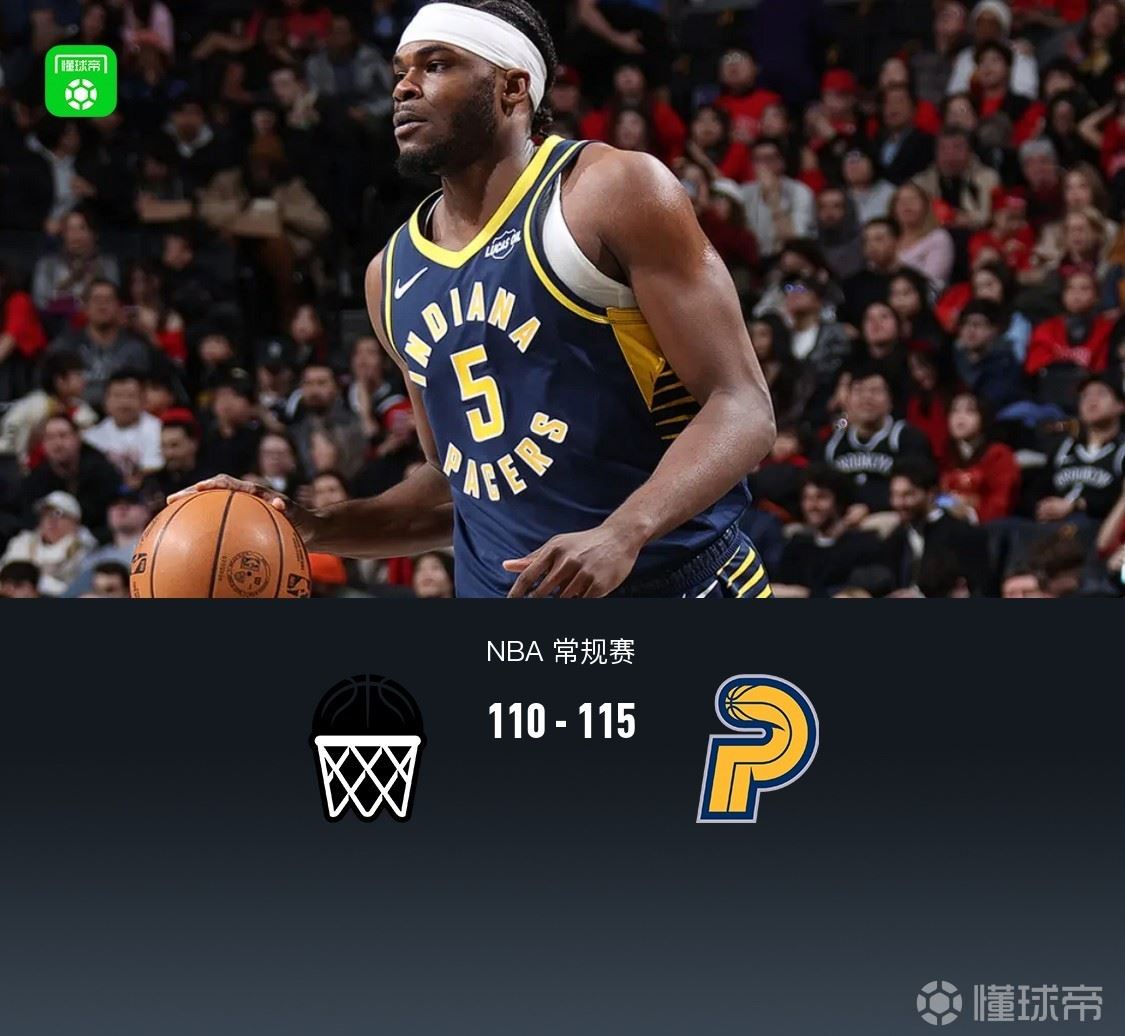 步行者115-110险胜篮网,沃克23+5,特拉奥雷20+8