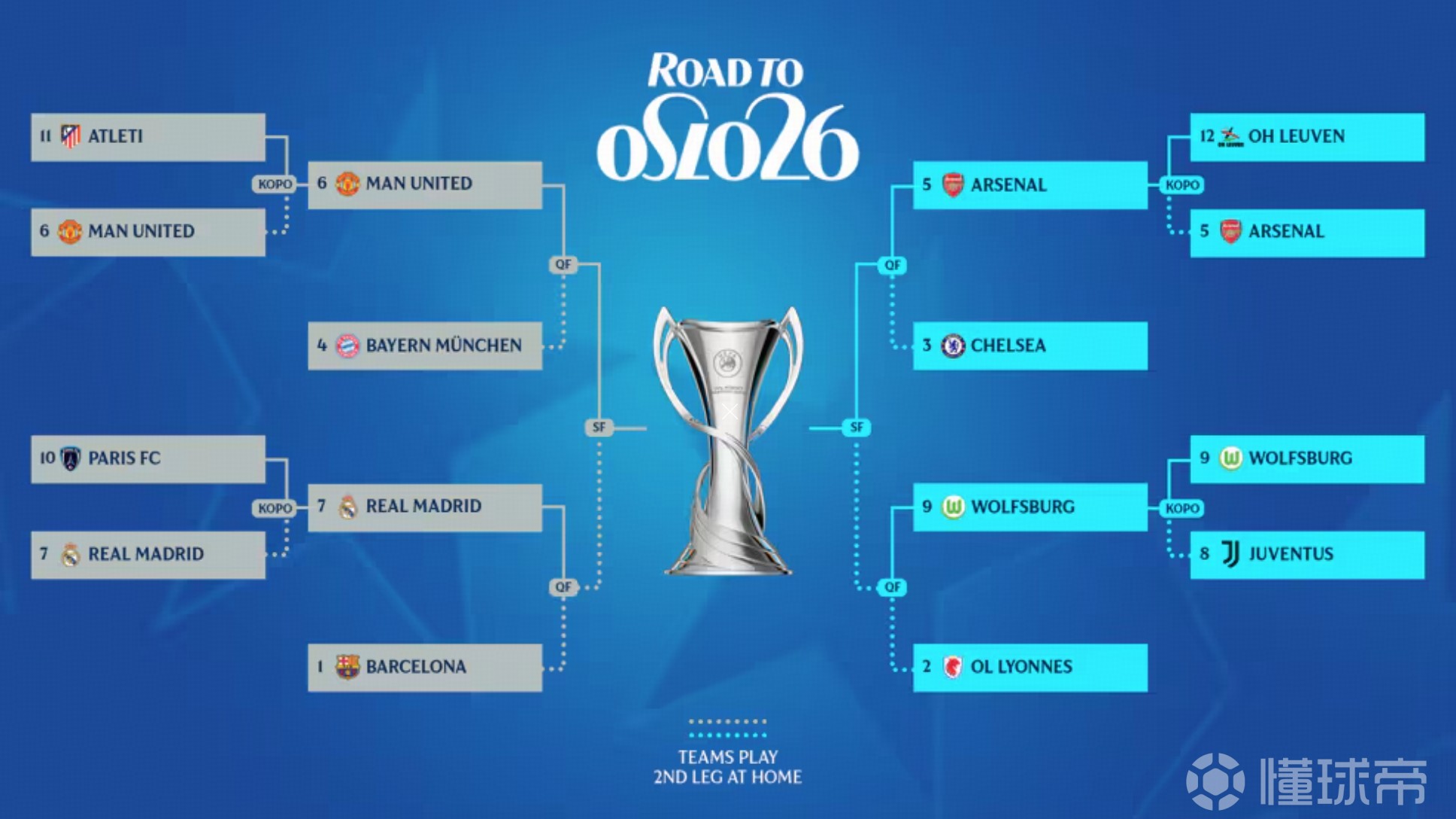 女足欧冠1/4决赛:皇马vs巴萨,阿森纳vs切尔西,曼联vs拜仁