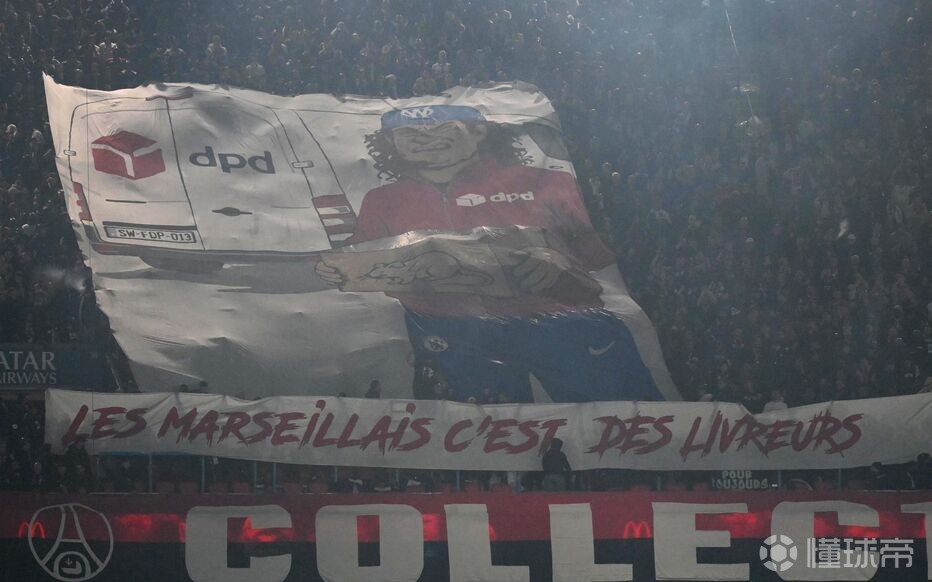 巴黎球迷用Tifo嘲讽马赛人是送货的,快递公司:对此行为我方深感遗憾