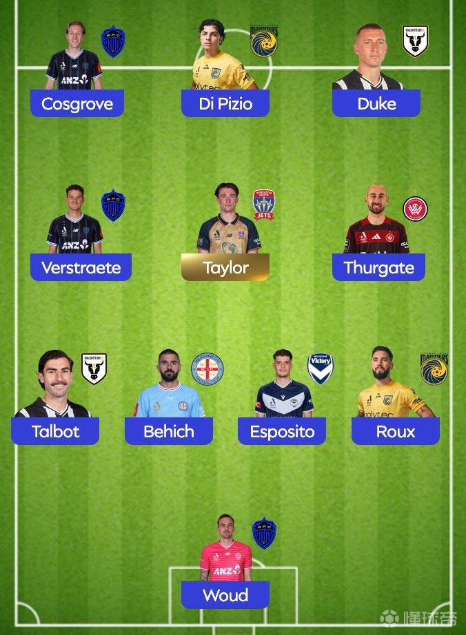 澳超第16轮最佳阵容:纽卡斯尔喷气机边锋克莱顿-泰勒戴帽领衔